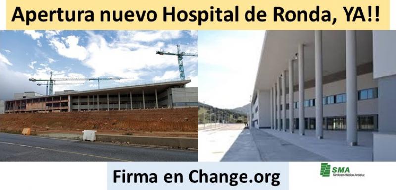 La plataforma ‘Hospital Serranía ¡¡Ya!!’ ha lanzado una campaña mediante el portal change.org para recoger firmas y reclamar a la Consejería de Salud de la Junta de Andalucía la apertura «inmediata» del nuevo hospital comarcal de Ronda (Málaga).