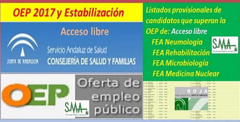 OEP 2017-Estabilización. Listado provisional de personas que superan el concurso-oposición de FEA Neumología, Rehabilitación, Microbiología y Medicina Nuclear, acceso libre.