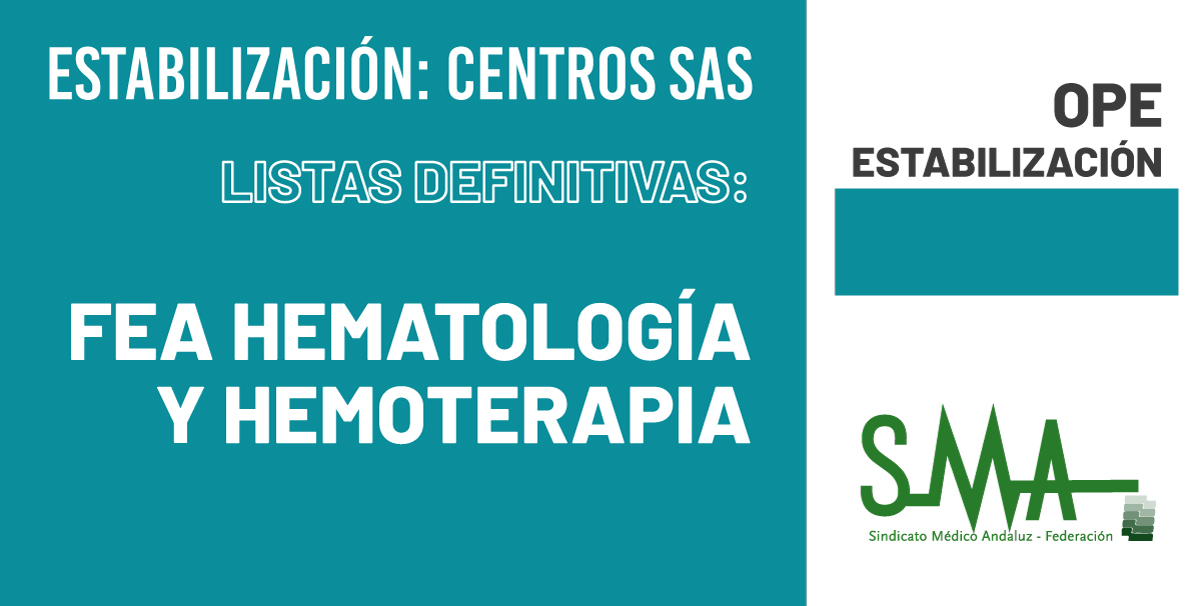 OPE Extraordinaria: Publicados listados definitivos de personas que superan el concurso de FEA Hematología y Hemoterapia (Centros SAS)