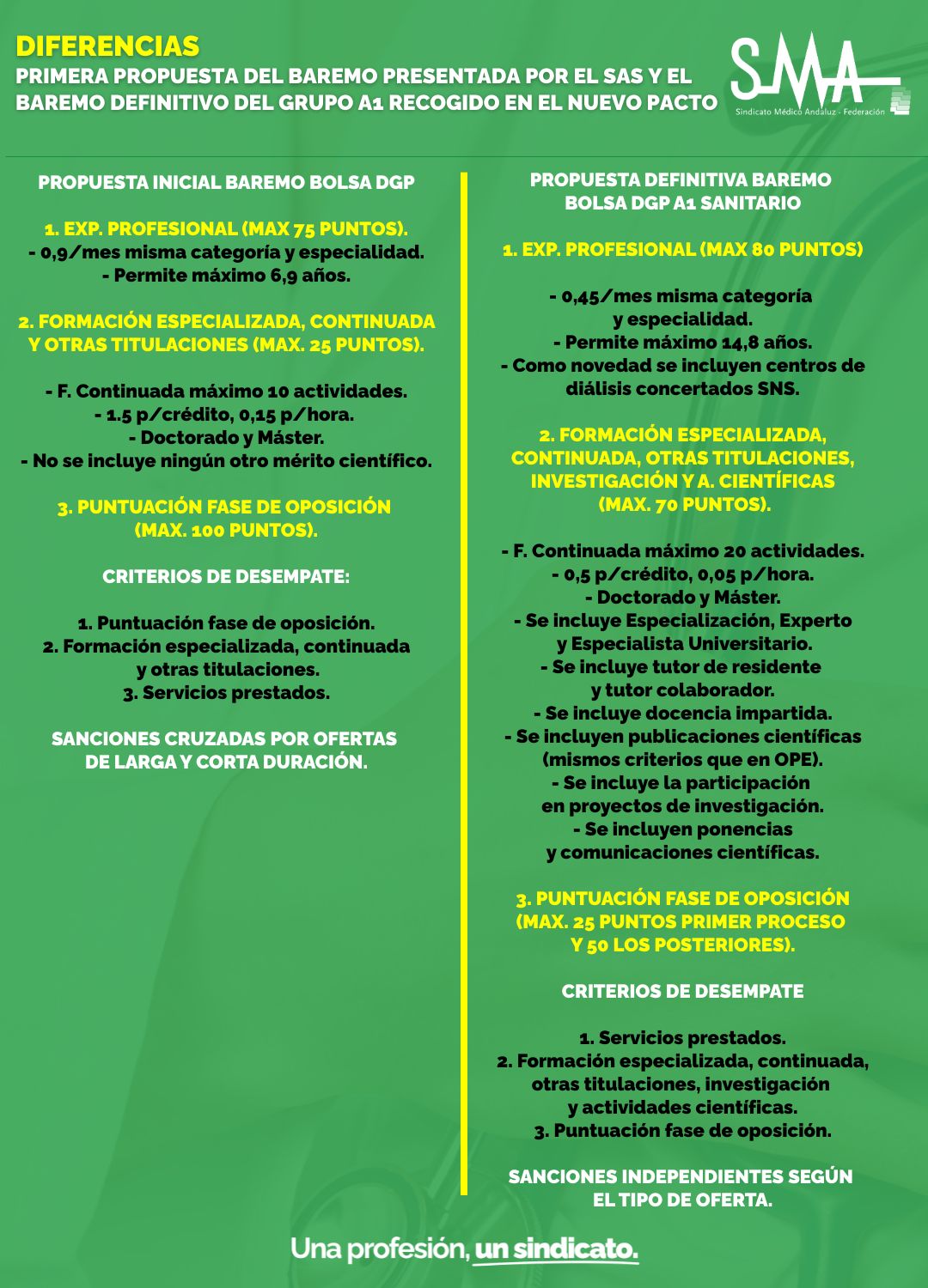 A continuación, mostramos de modo esquemático las diferencias entre la primera propuesta del baremo presentada por el SAS y el baremo definitivo del grupo A1 recogido en el nuevo Pacto: