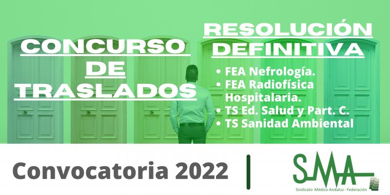 Traslados 2022: Resolución definitiva del concurso de traslado para la provisión de plazas básicas vacantes de FEA Nefrología, Radiofísica Hospitalaria y Técnicos de Salud