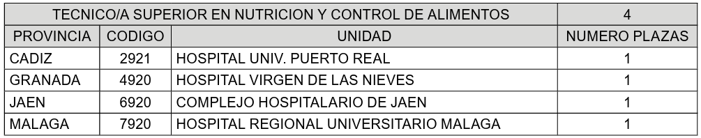 • Técnico/a Superior en Nutrición y Control de Alimentos.